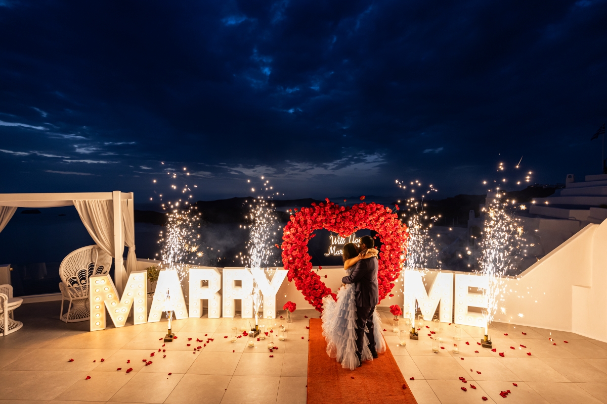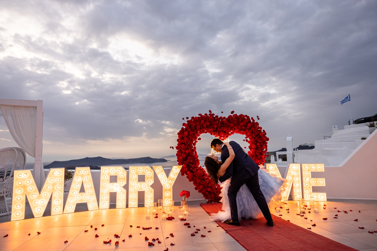 All inclusive Santorini proposal packages is the best way idea a memorable proposal day in Santorini.As a couple, one of the most important decisions you can make is to commit to each other for the rest of your lives. Deciding to walk the remaining steps of life side-by-side with the one you love is one of the most beautiful promises anyone could make