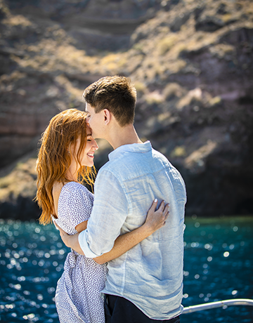 Regarding renting a Yacht here in Santorini can go as follows; The Lady/Man which is going to be proposed to knows that you’ve booked a private yacht charter for the two of you on one of the days that you will be in Santorini.