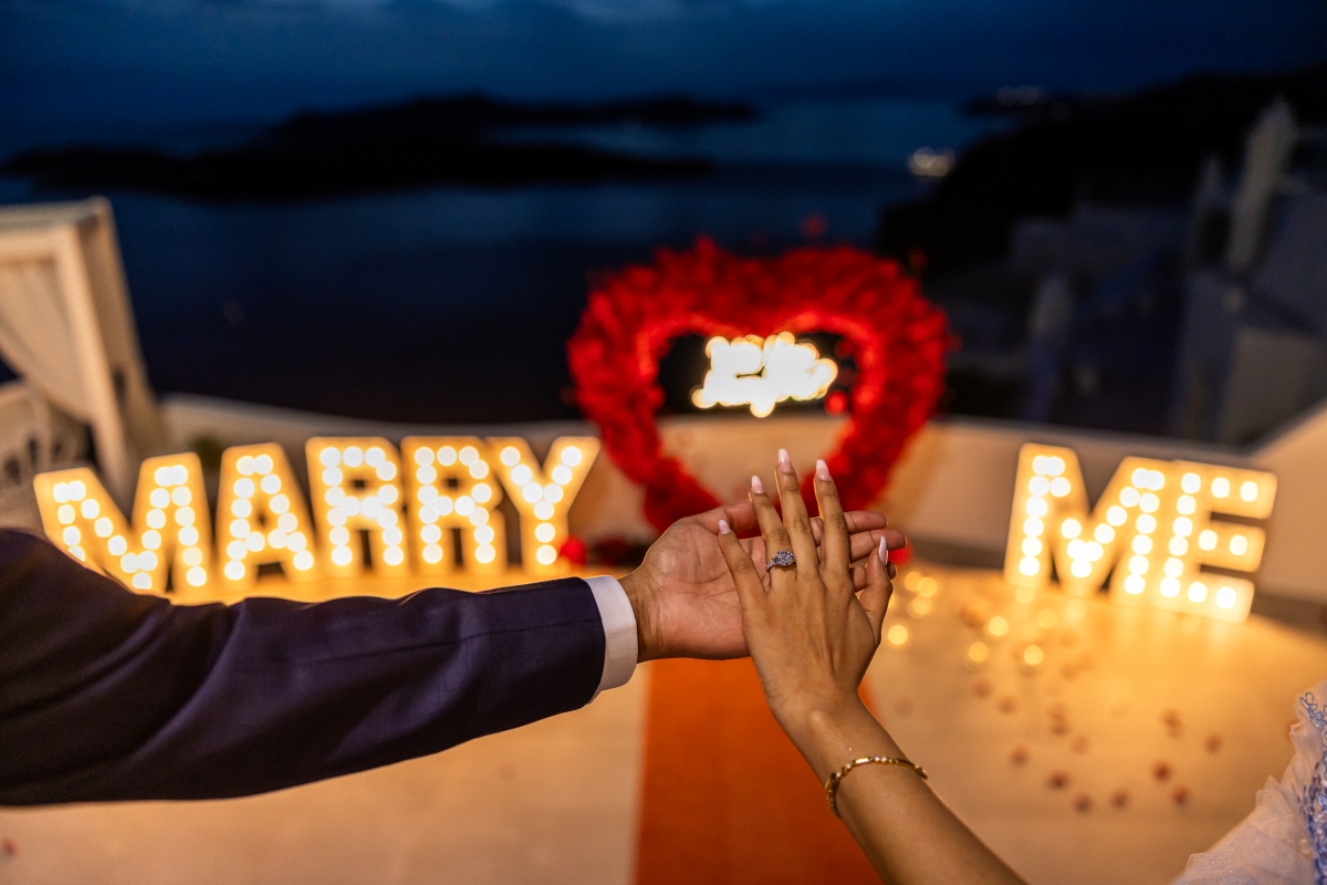 •Dress for the Occasion: Santorini’s cobblestone streets and cliffside views can be both beautiful and tricky to navigate. If you are proposing outdoors or near the caldera, choose comfortable but stylish attire. Avoid high heels and opt for dressy sandals or shoes.